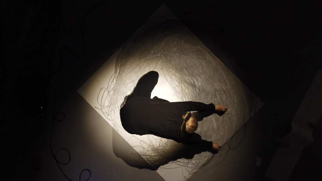 25. martā AB12 kabinetā būs ‘intuitīvs skaņas zīmēšanas’ notikums, kurā pētīsim somatikas un uztveres mākslas prakses, iegremdējoties dabas un fizikālu parādību kopā – elektrības skaņā, ritmos un tempos, trokšņos, un toņos, un pulsācijās, telpā starp klātbūtni un zudību, skaņa un attēls ‘atklāsies caur rokām’.